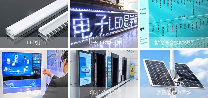 咨詢熱線:13485098787LED燈、LED顯示屏、數字滾動系統、智能語音報站系統(攝像頭、無線wifi)、觸摸屏、LCD廣告機系統、太陽能供電系統等。